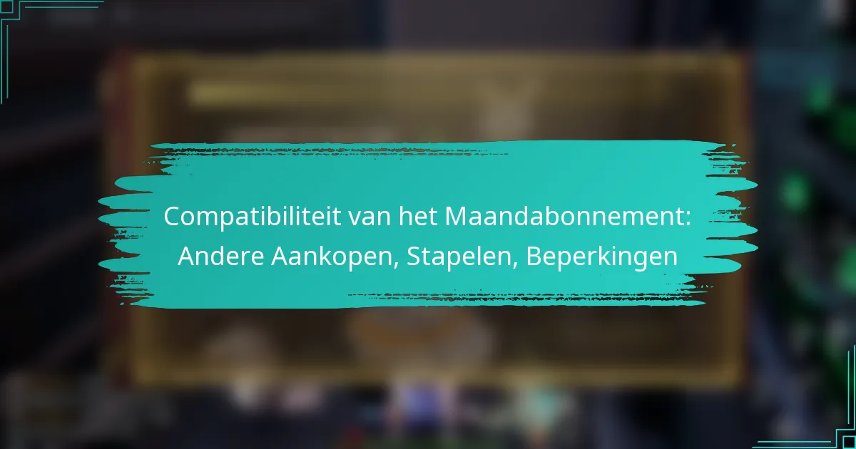 Het Maandabonnement is een abonnementsdienst die gebruikers in staat stelt om toegang te krijgen tot een reeks producten en diensten voor een vaste maandelijkse vergoeding. Het begrijpen van de compatibiliteit met andere aankopen is essentieel om de waarde te maximaliseren en de geschiktheid te waarborgen.